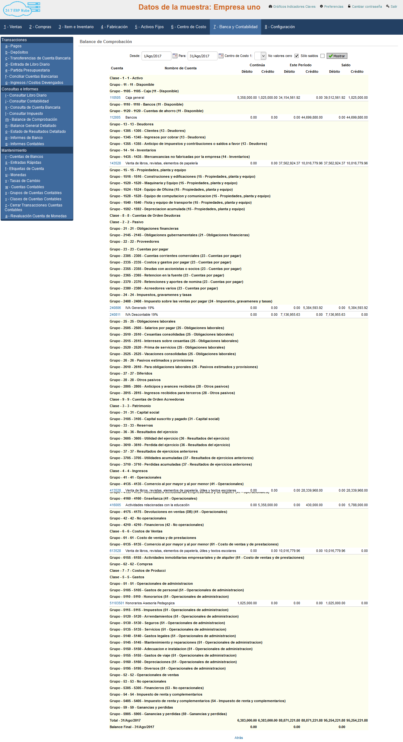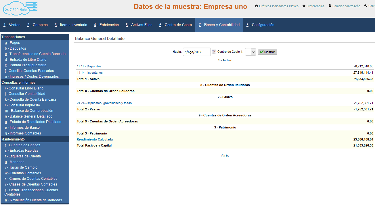 Todas las transacciones se introducen automáticamente en el módulo de contabilidad; permitiéndole tener una visión instantánea del progreso de su negocio. A continuación enunciamos algunas de las características de Banca & Contabilidad de 24 7 ERP Nube: