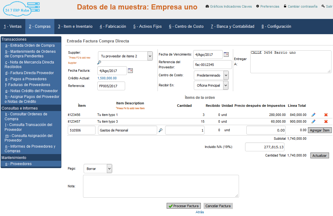 Simplifique el proceso de sus pedidos de compra y mantenga el control: Además de realizar entrada de compras directas (para compras de contado); 24 7 ERP Nube tiene un sistema completo de control de pedidos