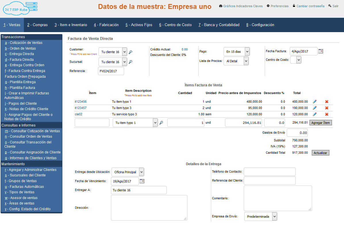 24 7 ERP Nube tiene múltiples opciones para facturas de ventas; incluyendo: